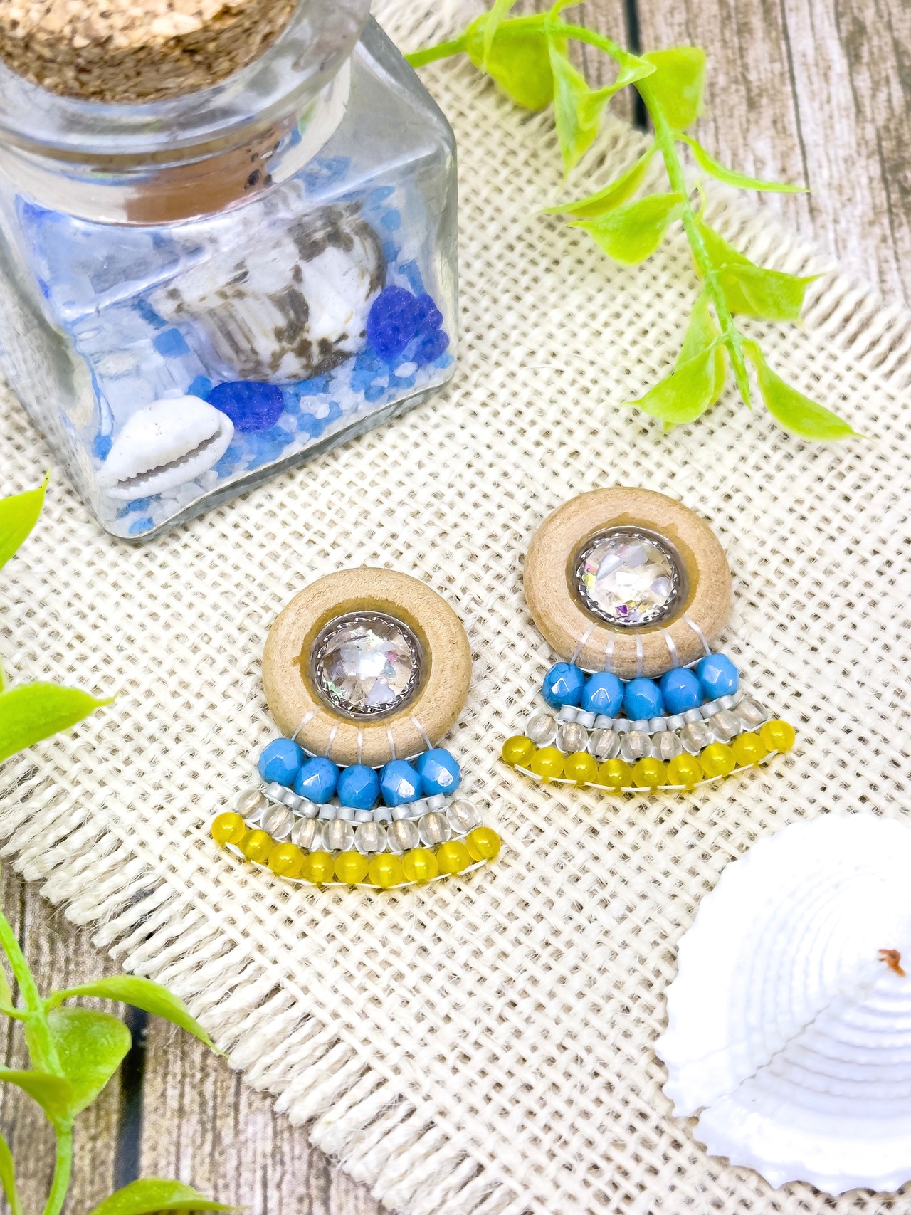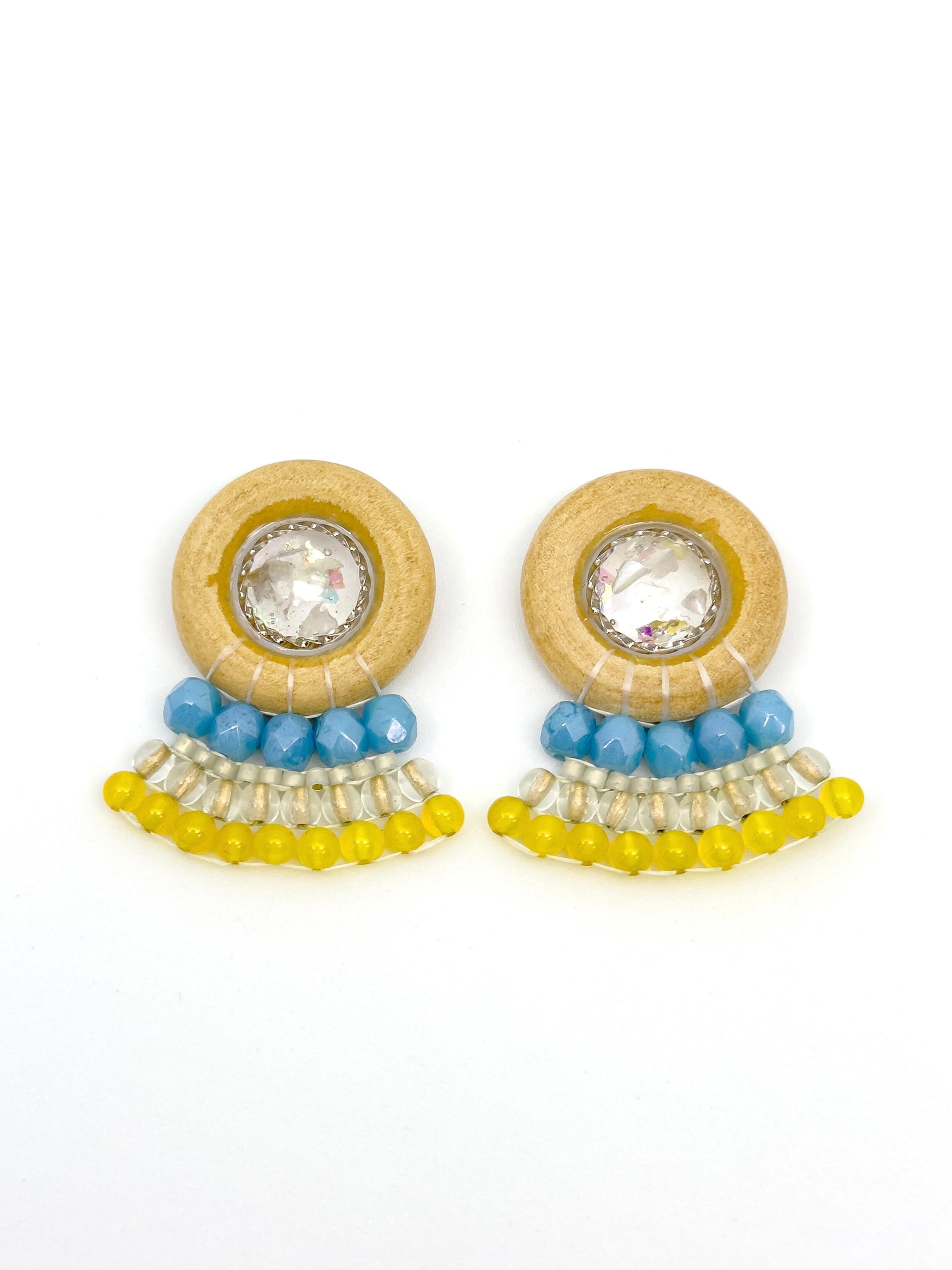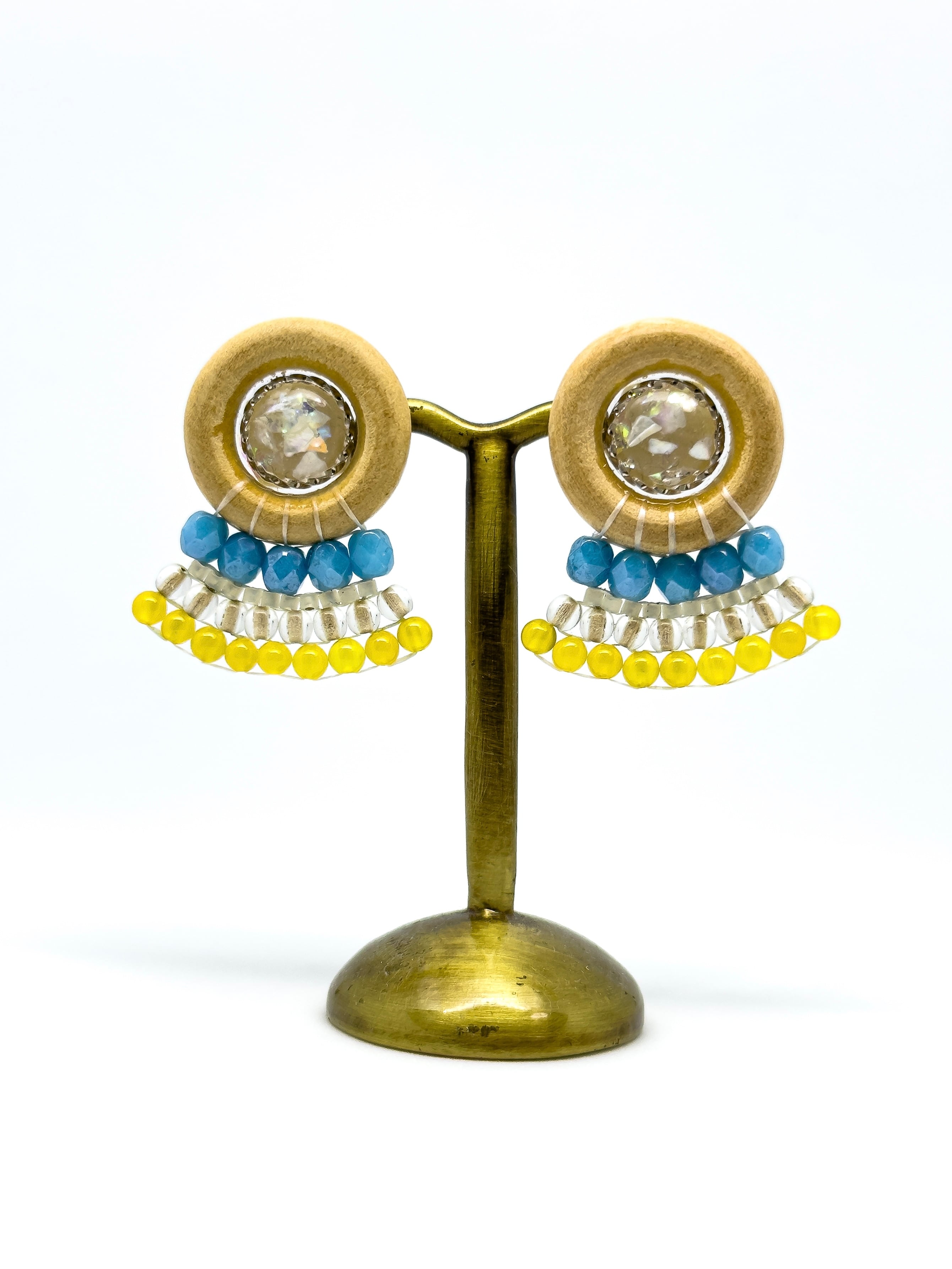 素材:金属(メッキ)・合成樹脂(レジン)・ウッド・チェコビーズ・ガラスビーズ・天然石(イエローアゲート)