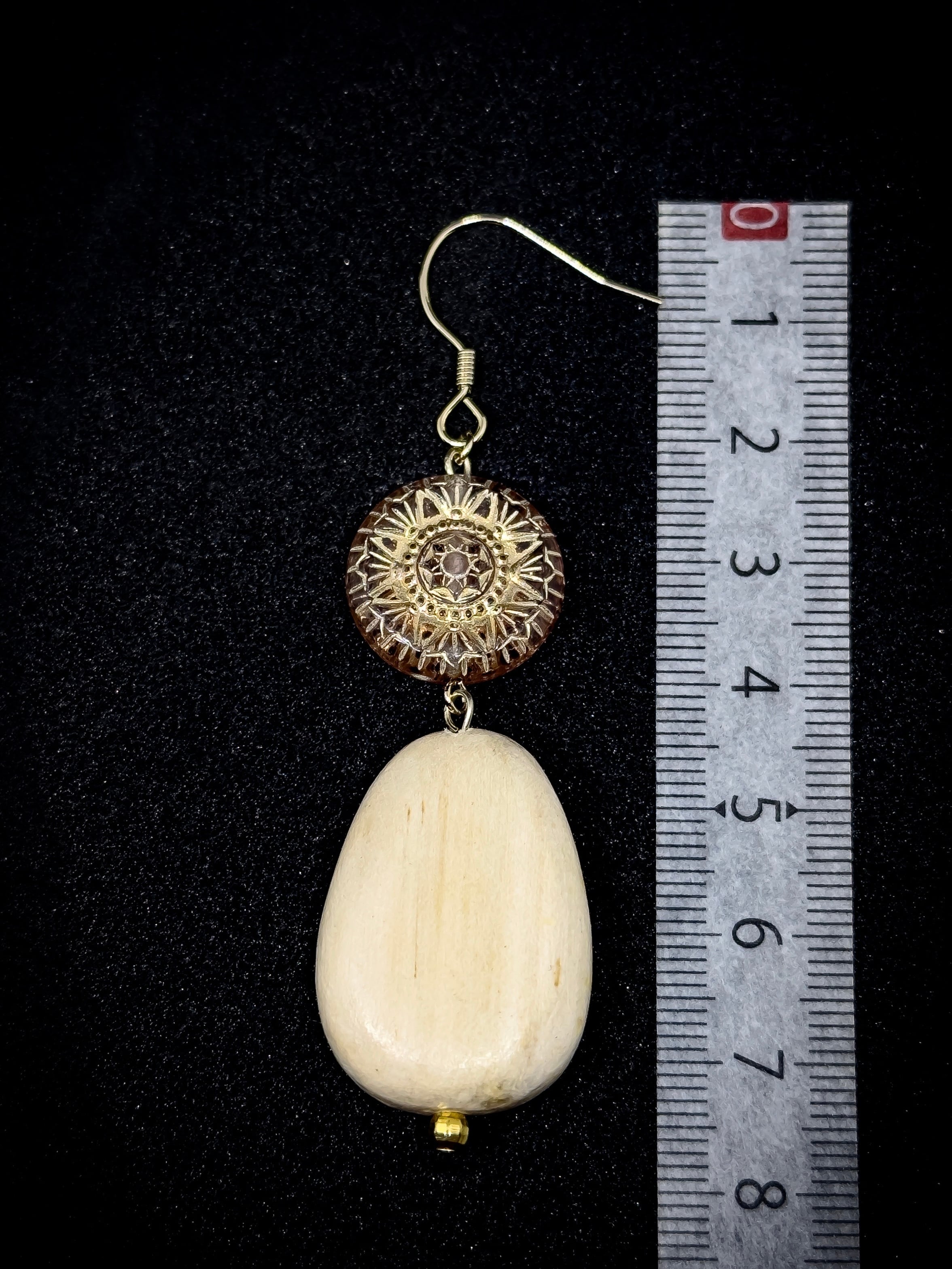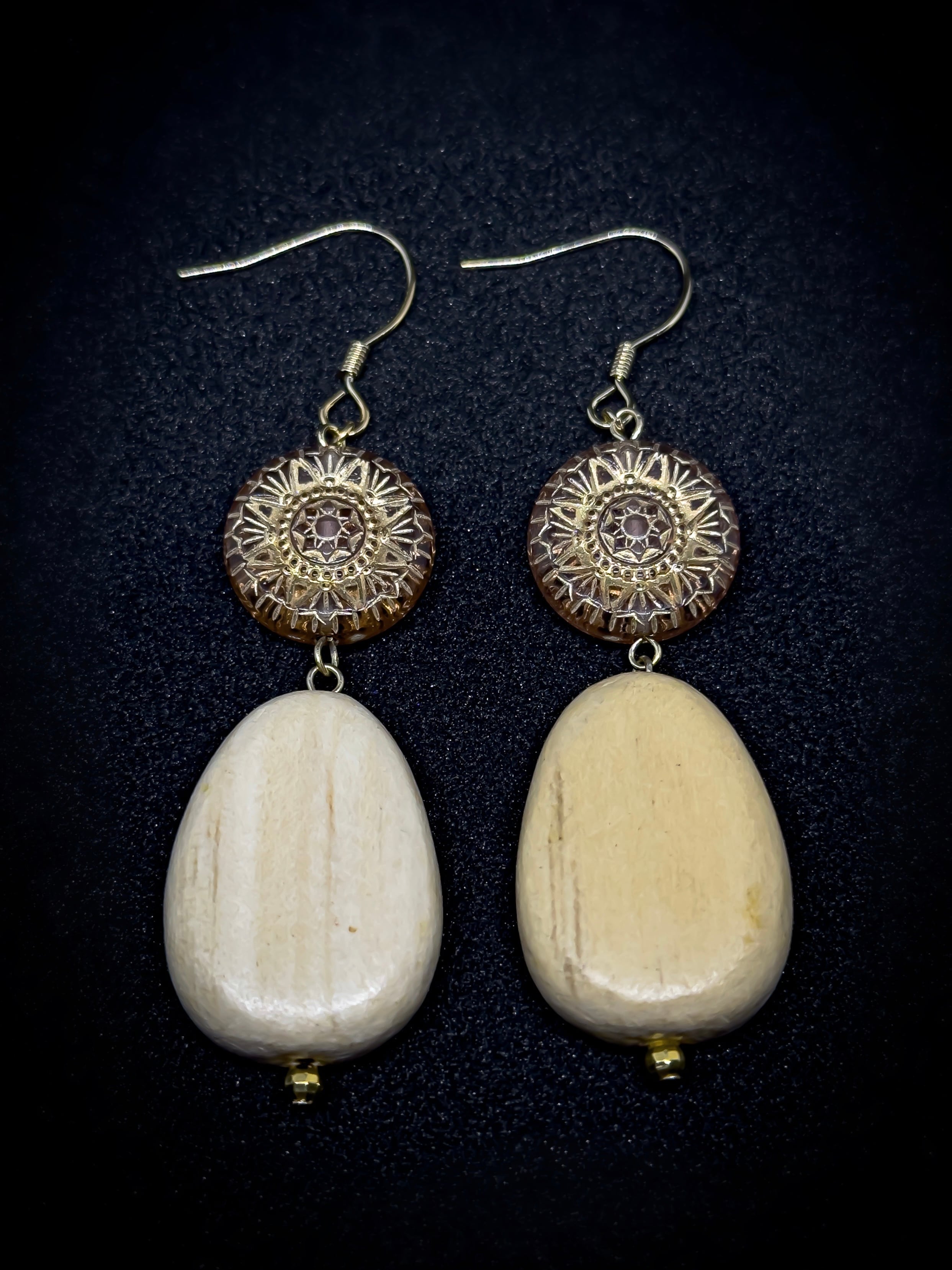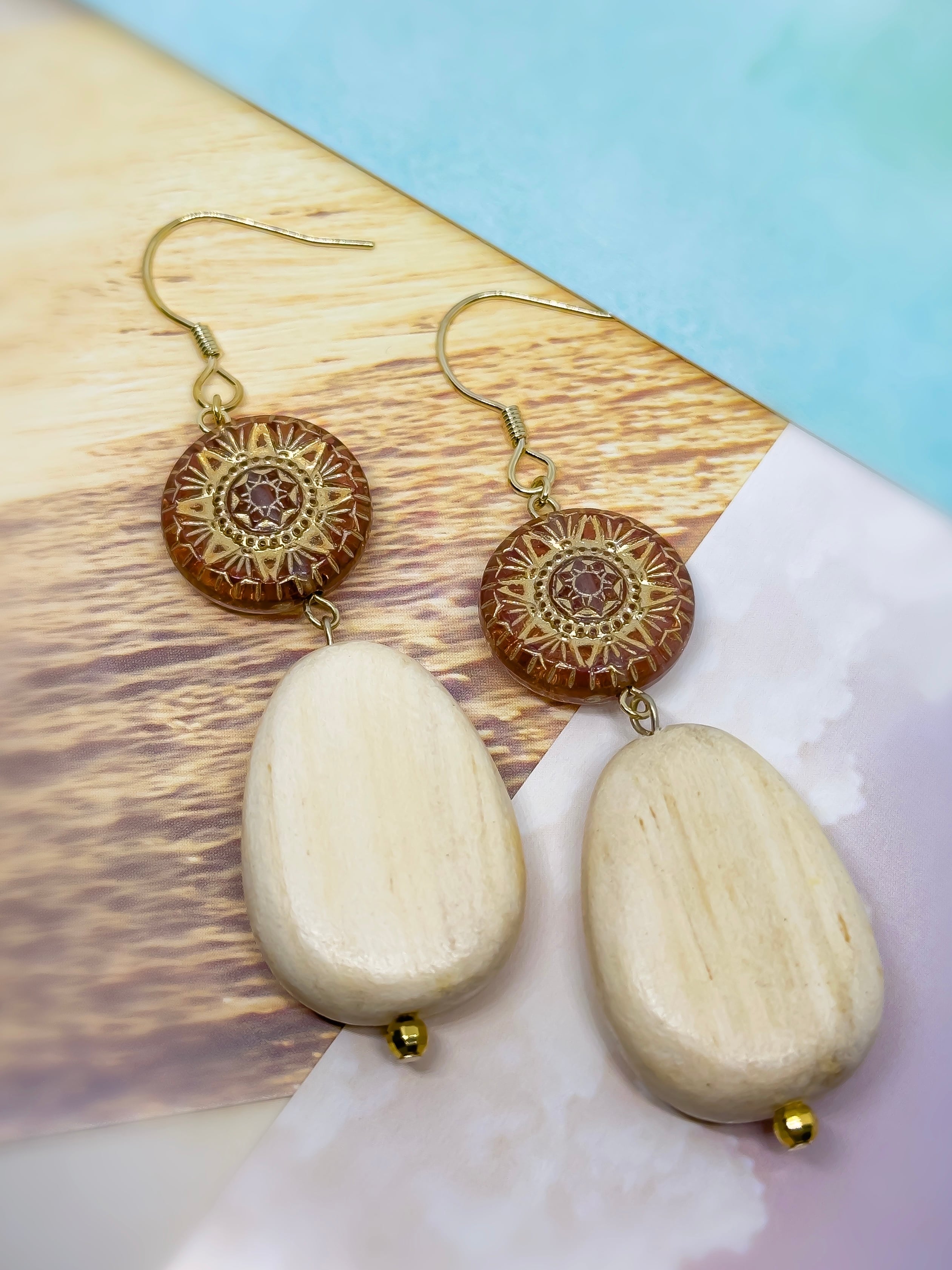 ぷっくりと丸みのあるウッドビーズが、エスニックな雰囲気のビーズを引き立てます。