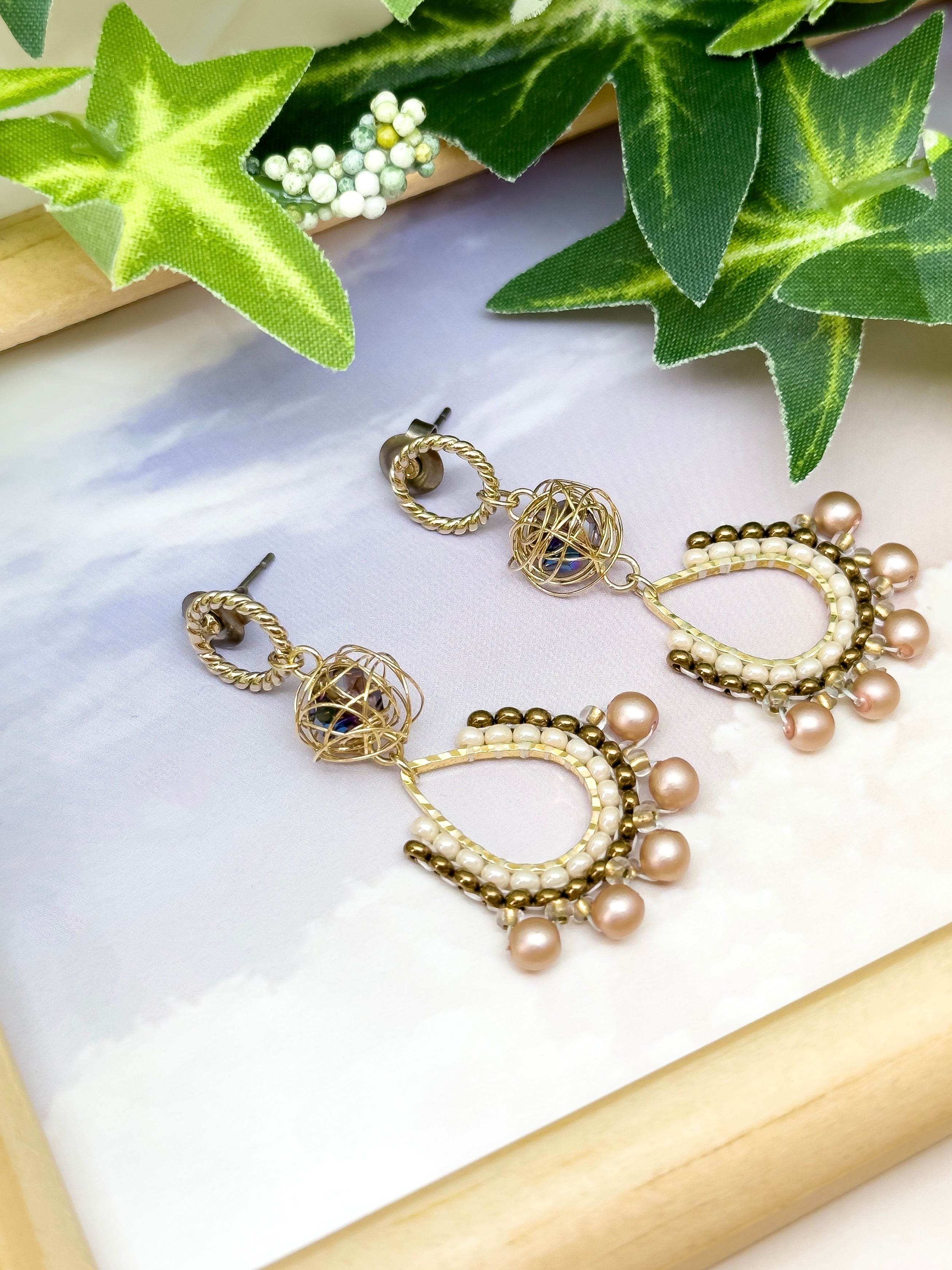 素材:金属(メッキ)・チタン(ポスト部分)・ガラスビーズ・パール(チェコパール)