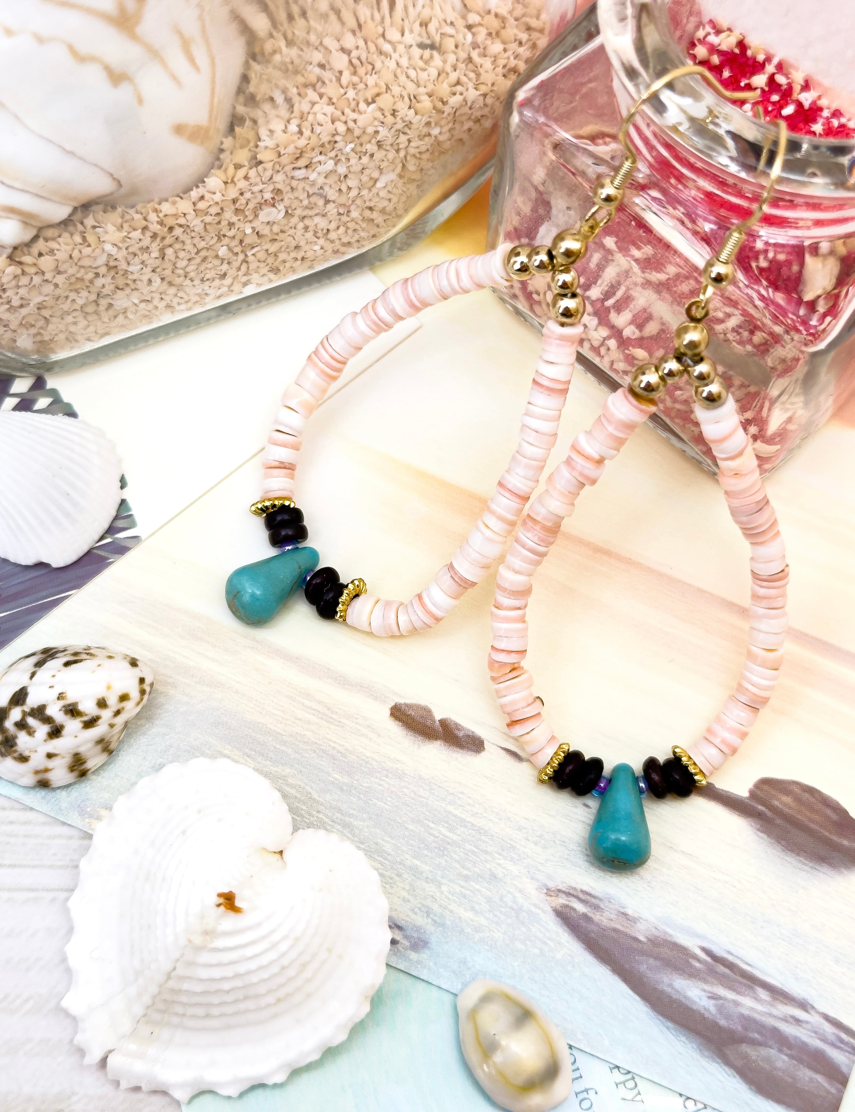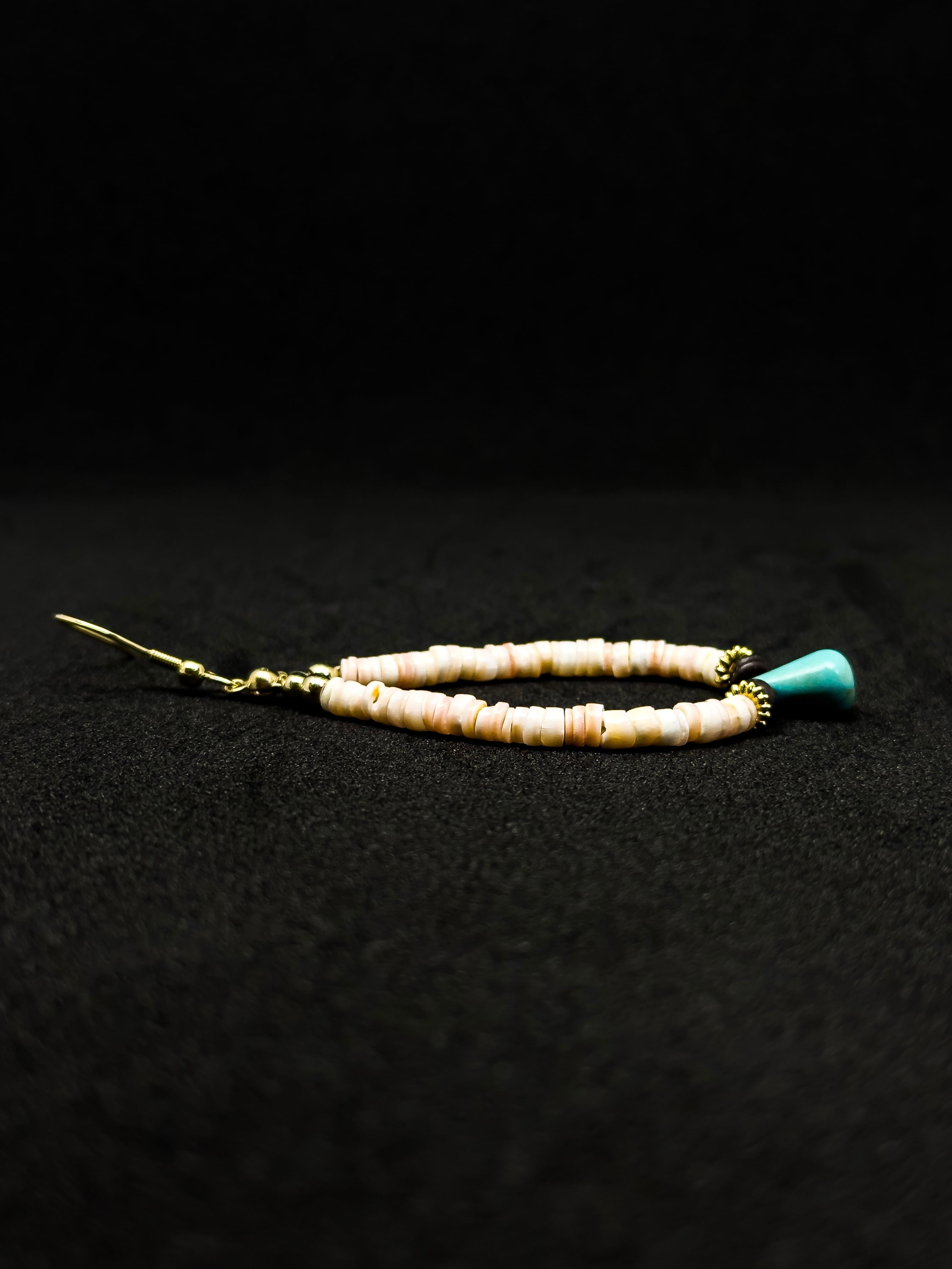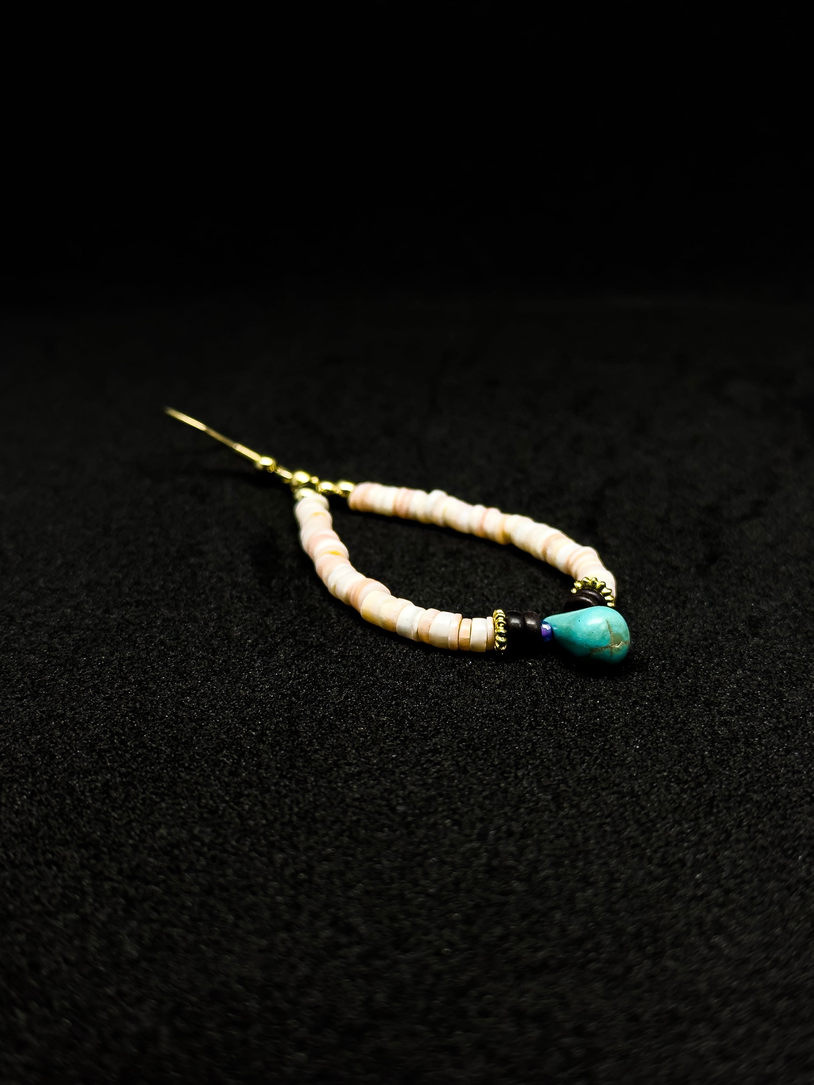 ホワイト×ピンクが可愛いシェルに、まるでターコイズのようなドロップビーズがアクセントの夏のデイリーアクセサリーです。