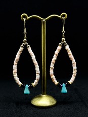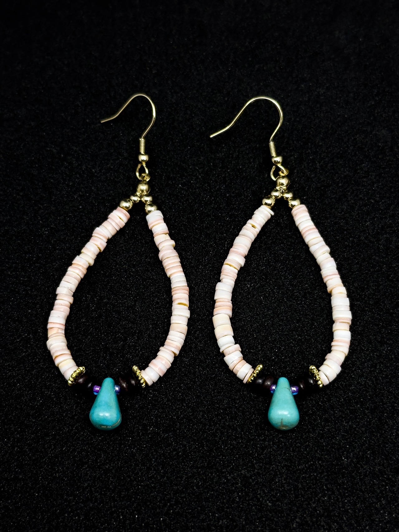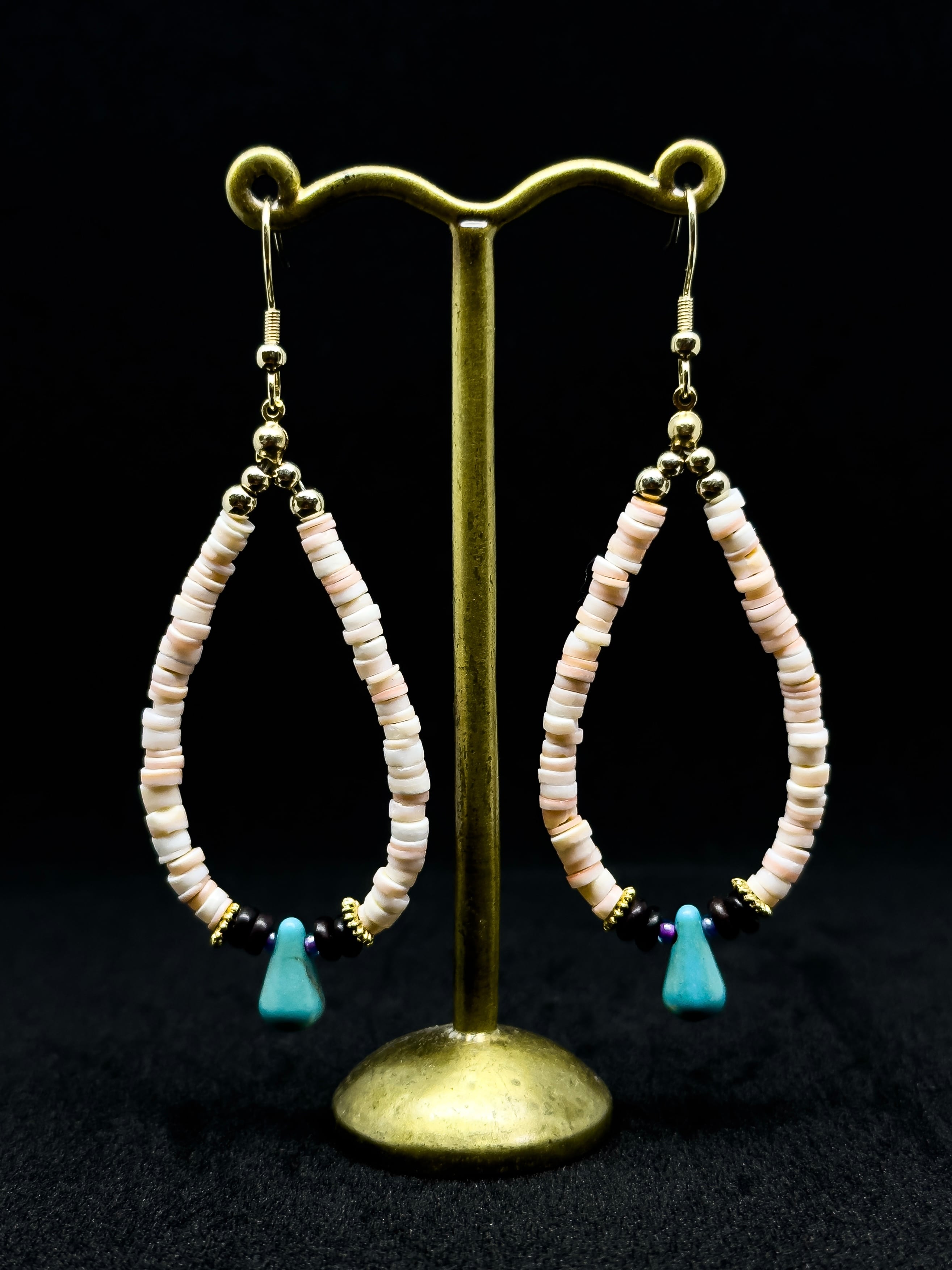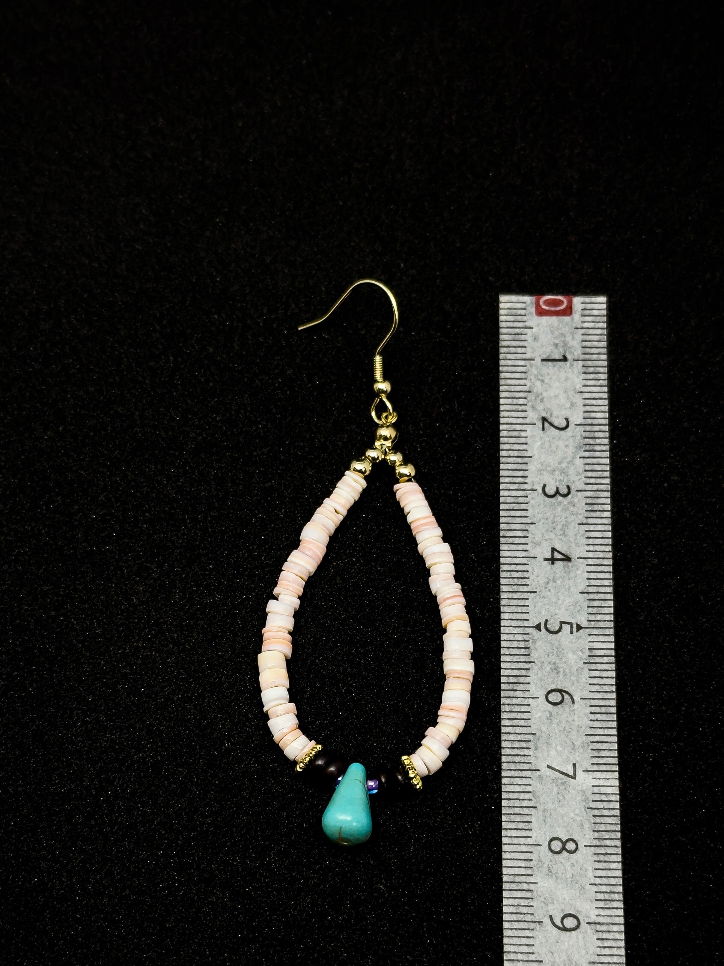ホワイト×ピンクが可愛いシェルに、まるでターコイズのようなドロップビーズがアクセントの夏のデイリーアクセサリーです。