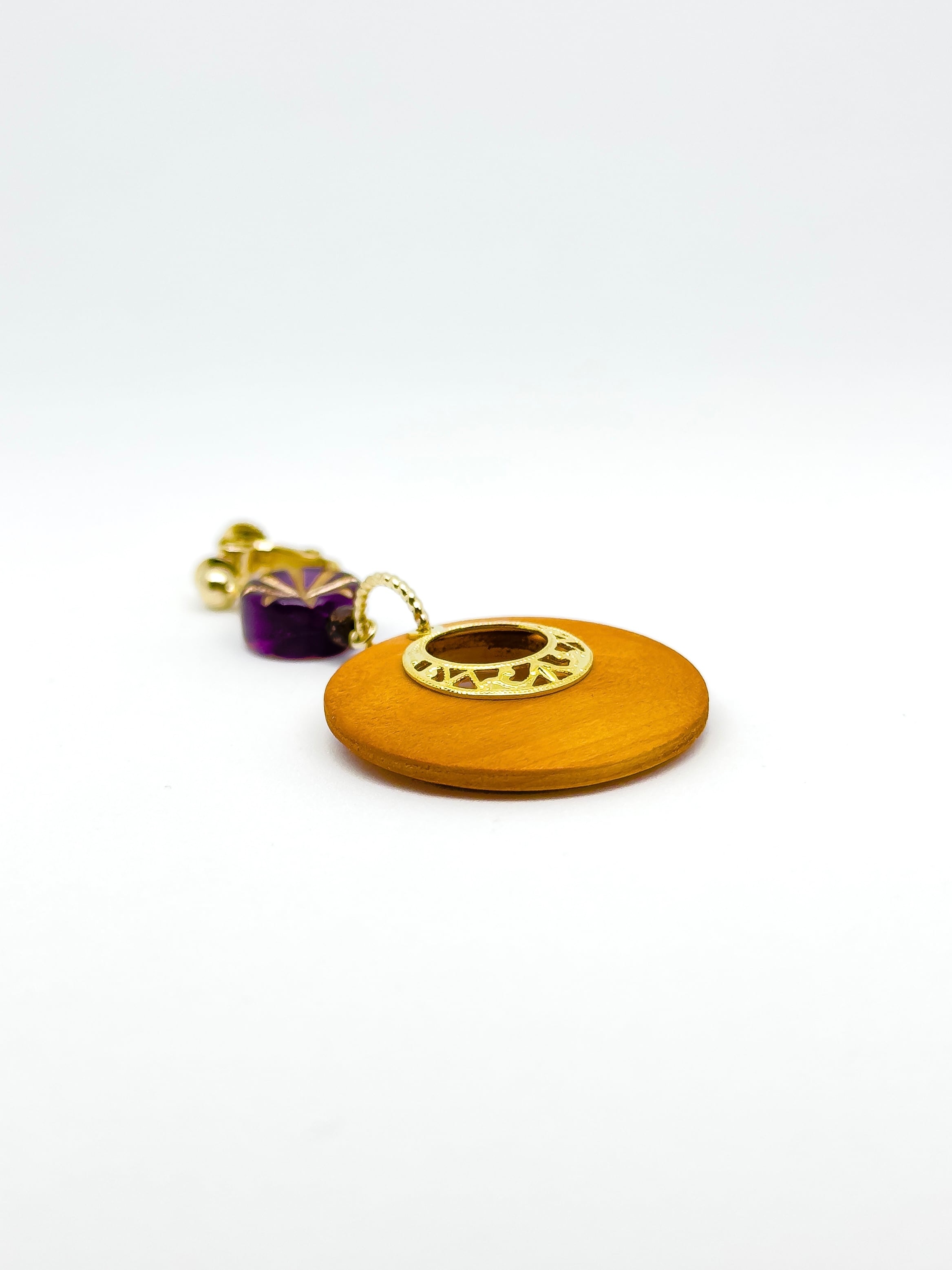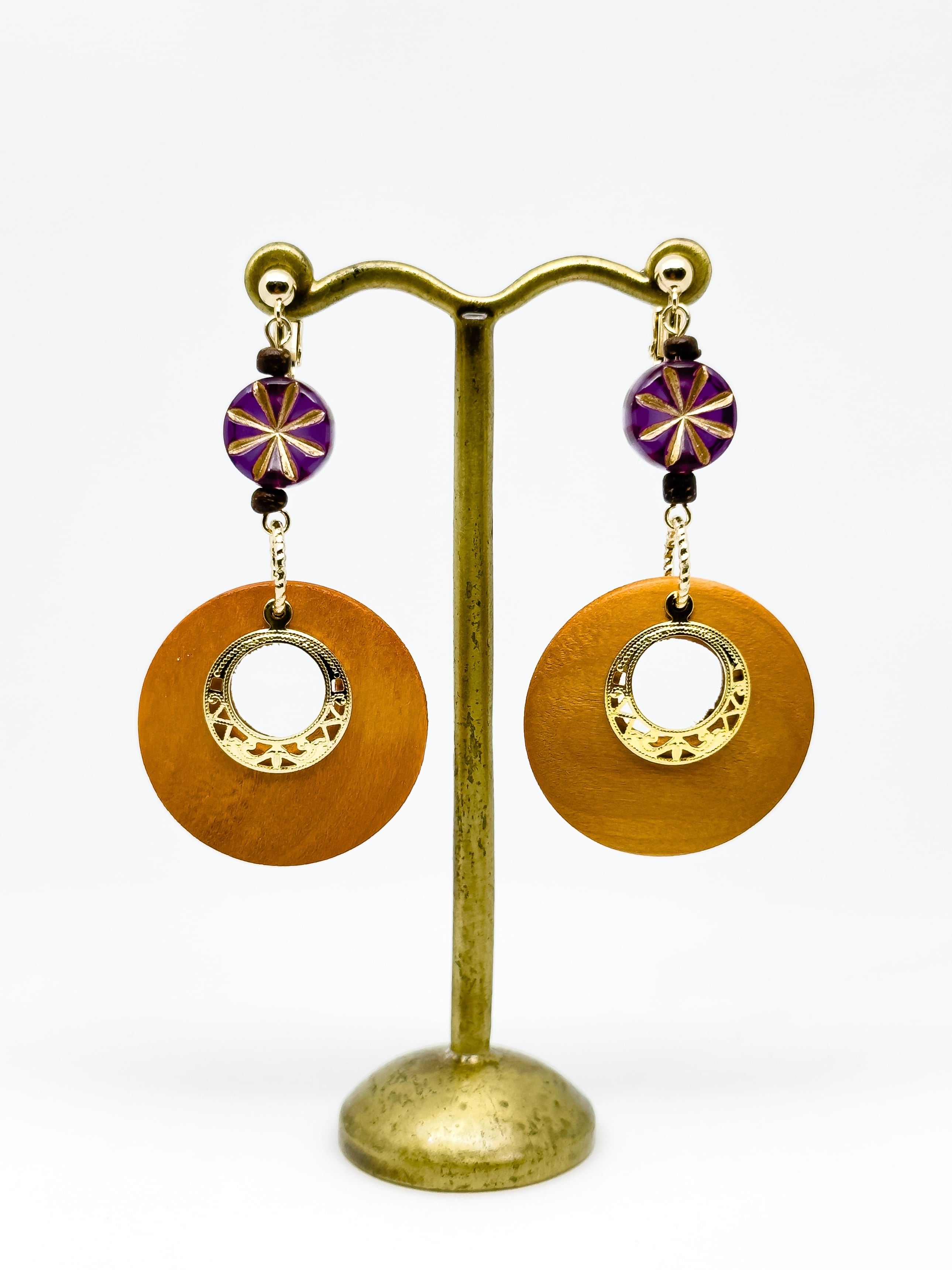 顔周りを明るく見せるオレンジに、柄の入ったパープルが全体を引き締めます。