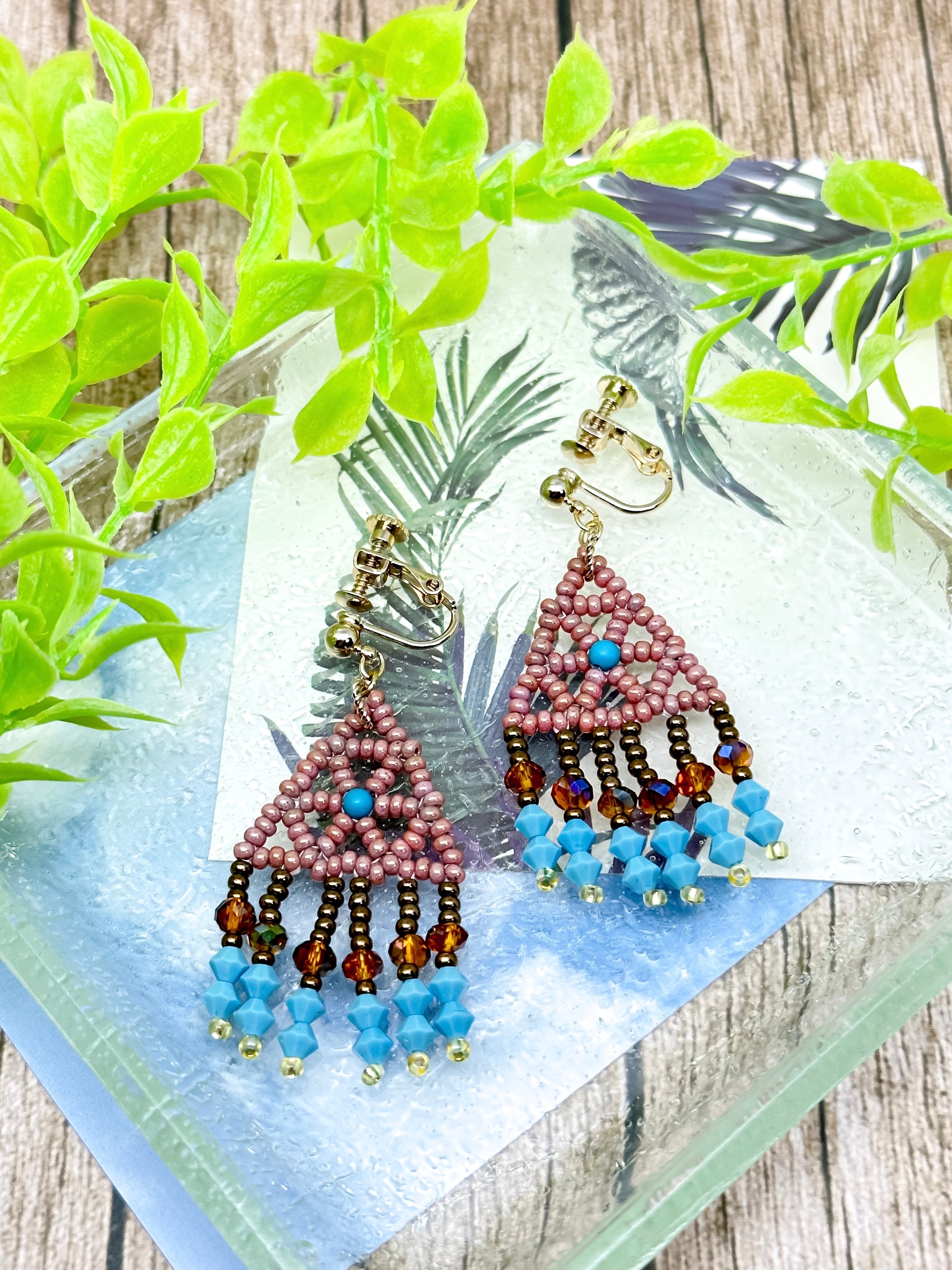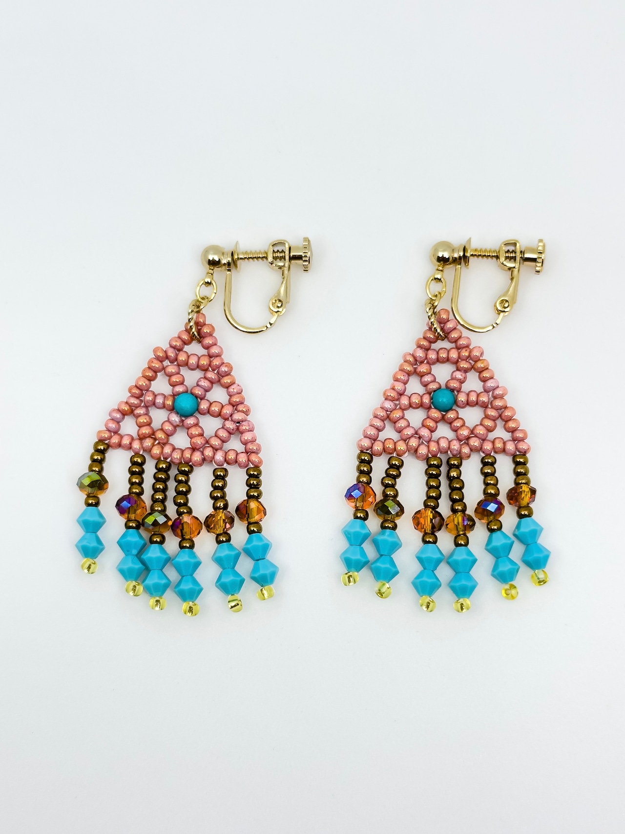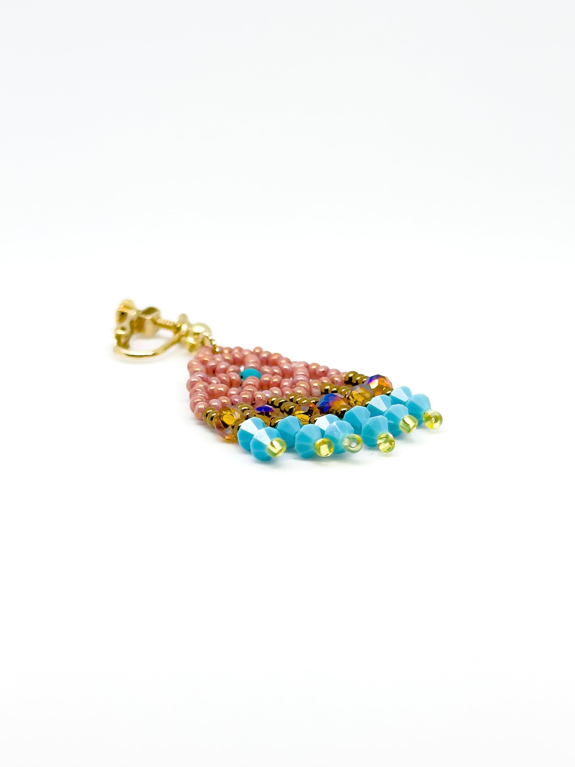 揺れ動くビーズフリンジは、少し重さを加えてしなやかに動くように致しました。